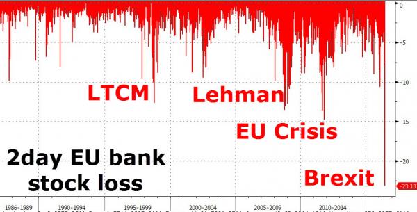 But of course the biggest news on Monday was what happened to European banks.  The Brexit vote has caused financial carnage for those institutions unlike anything that we have ever seen before.  Just check out this chart from Zero Hedge
